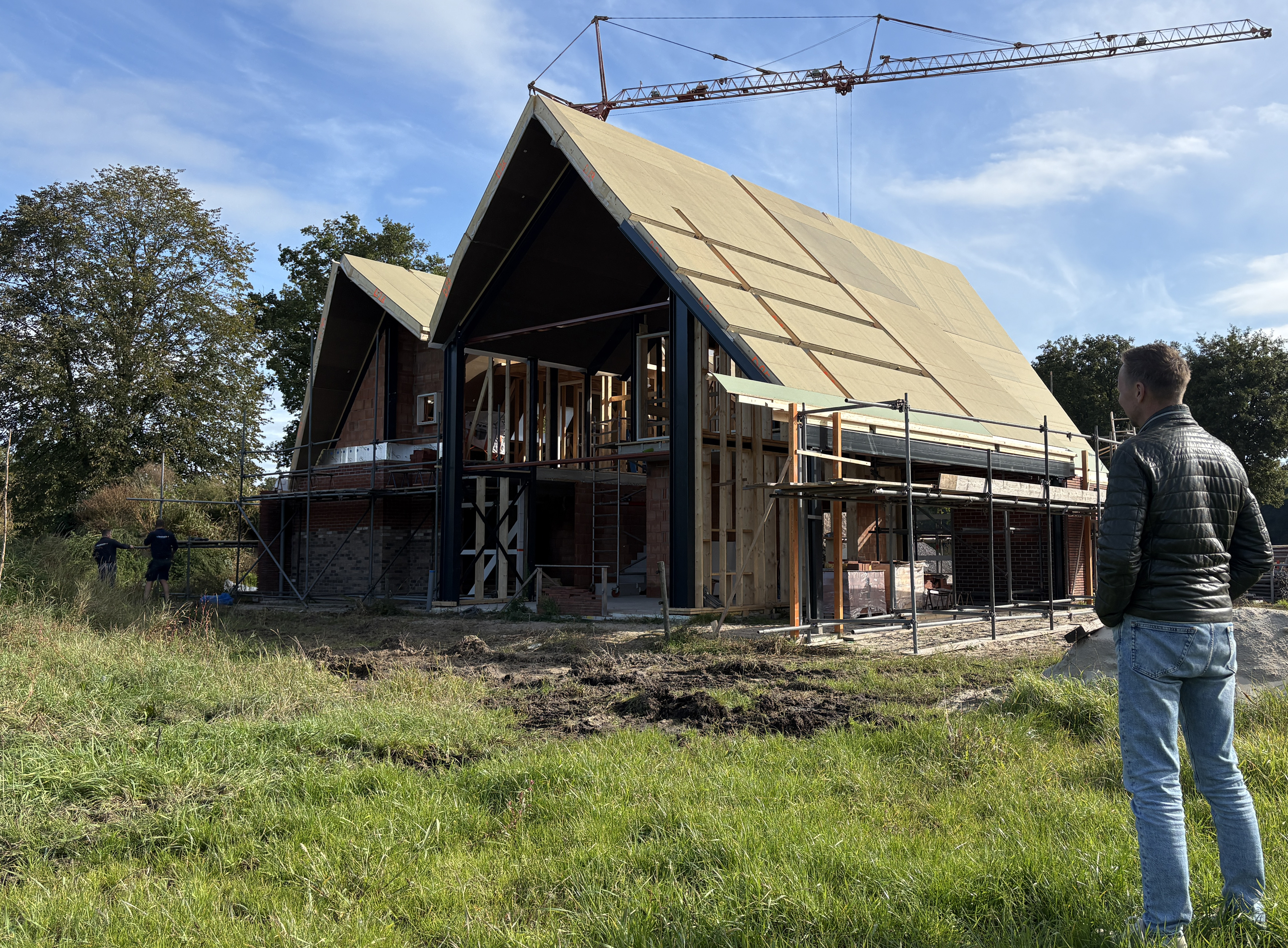 Hier worden we dolgelukkig van! Helemaal zo net voor het weekend.Vanochtend na de bouwvergadering aan de keukentafel liepen we door de nieuwbouw twentse boerderij, mét dak erop!Doorkijkjes, vergezichten, knusse ruimtes, grote gevelopeningen, mooie materialen, bijzondere details.Alles wat we bedachten wordt